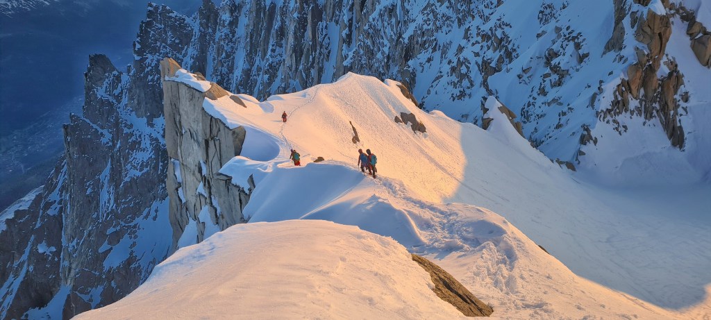Possibilité de séjour de 2 jours ou plus pour profiter d'autres arêtes environnantes : arête à Laurence, traversée des pointes Lachenal. Ou d'associer une journée d'escalade traditionnelle en grande voie, au soleil, sur la face Sud de l'Aiguille du Midi.